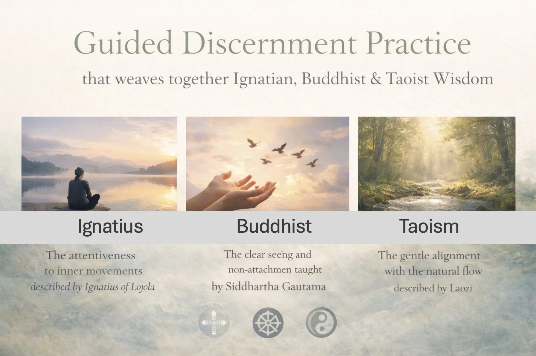 This practice is an 8 step Guided Discernment Practice that weaves together Ignatian, Buddhist & Taoist Wisdom: